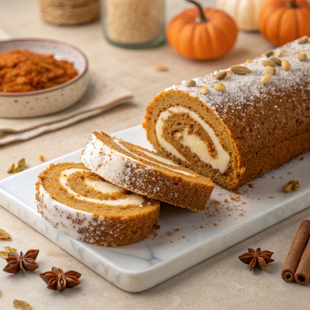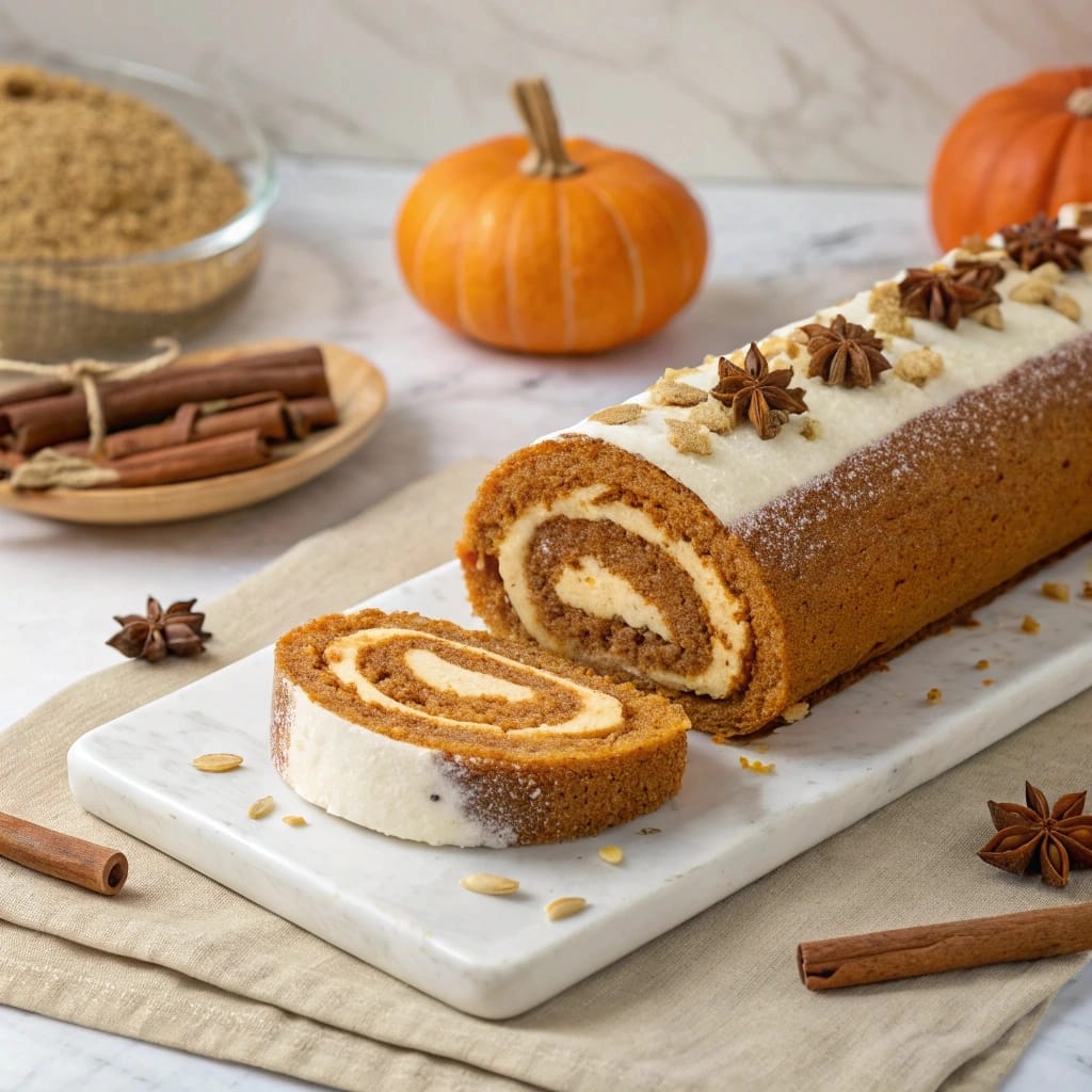Fall Pumpkin Spice Roll Cake – Soft, Creamy & Perfectly Spiced