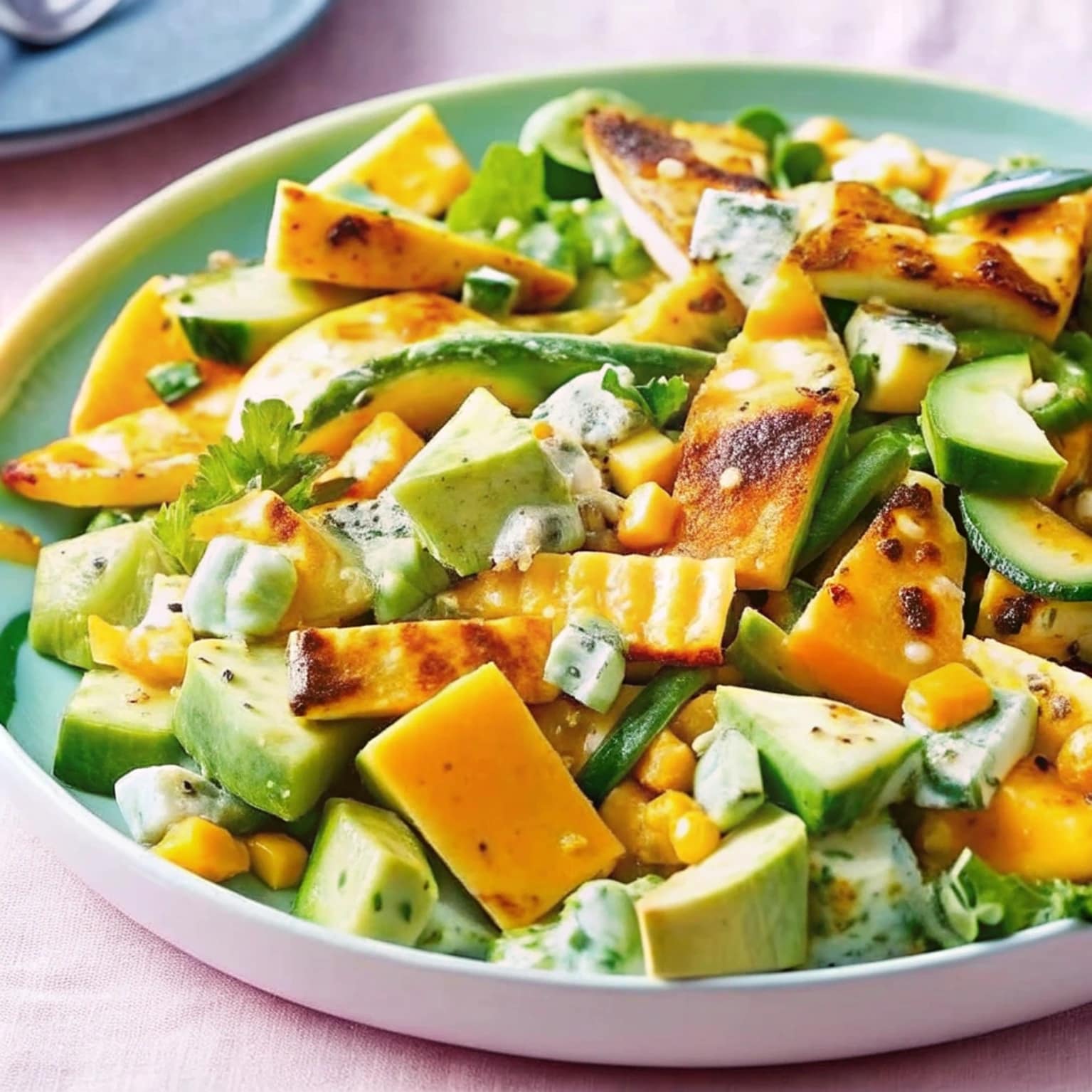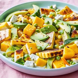 - Balanced flavors: Sweet mango, smoky corn, salty halloumi, and creamy dressing create harmony.
