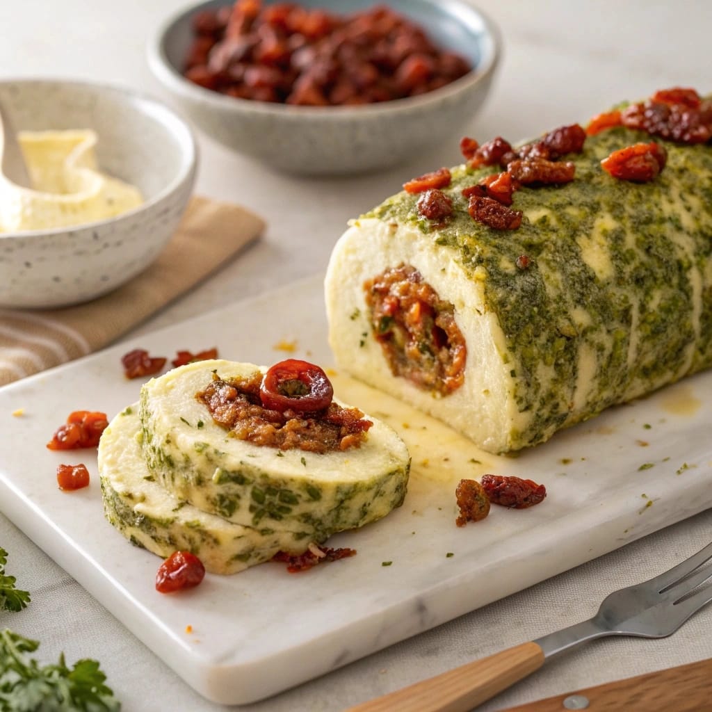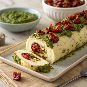 Cheese Log with Pesto and Sun-Dried Tomatoes – Elegant Holiday Appetizer